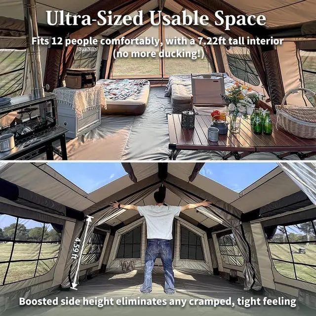 Expandable Canopy Design: The included 50 sqft awning expands your living space, providing shade, rain protection, or extra room for outdoor cooking and relaxing. The center zipper allows for a half-open setup when full coverage isn't necessary