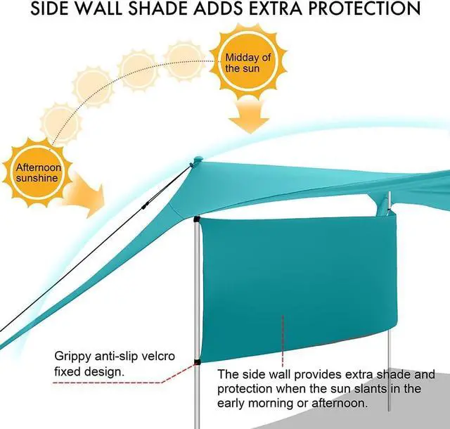 Side Wall Shade Adds Extra Protection The side wall provides extra shade and protection when the sun slants in the early morning or afternoon. It' s equipped with grippy anti-slip velcro fixed design.
