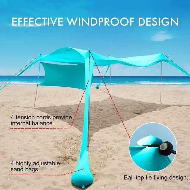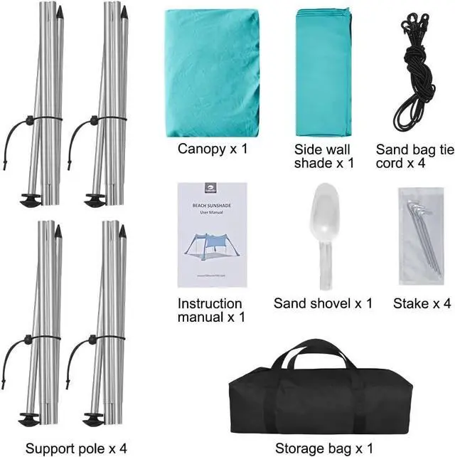 Easy to Carry This beach shade tent is very light. Our outdoor shades are available in sizes of 4, 6 or 8 people. Please feel free to contact us if there any issues.