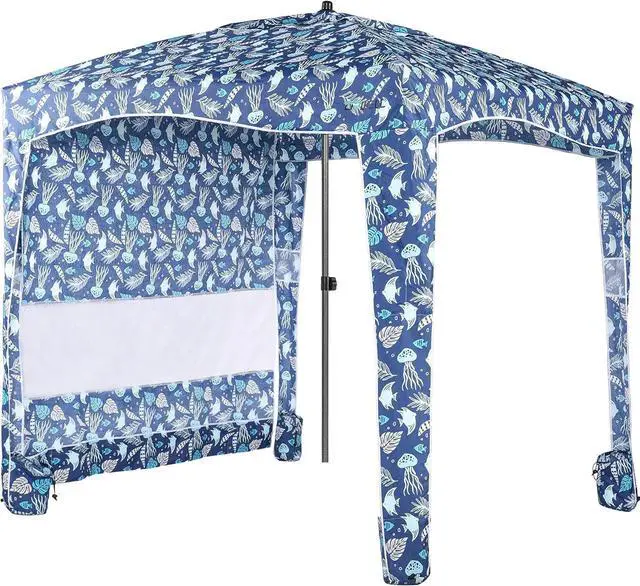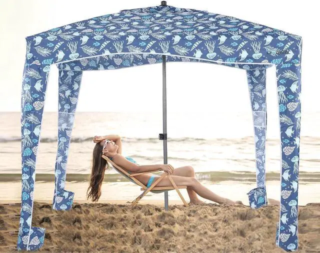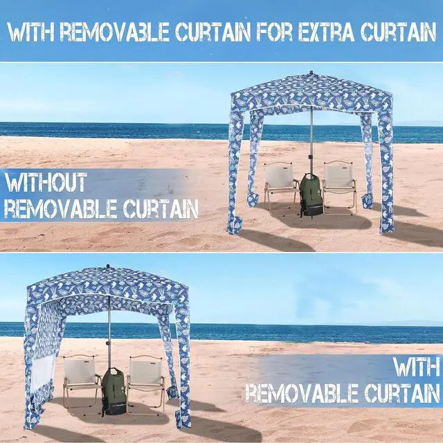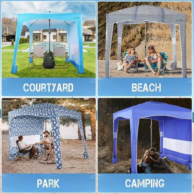 Design and Multi-Purpose - The sides of the beach cabana have a built-in sandbag which can be filled with sand to make the umbrella more stable and it has a pocket on each corner to store your sunglasses, cell phone and other small items. You can use it at the beach, camping, pool, park, market and many other places.