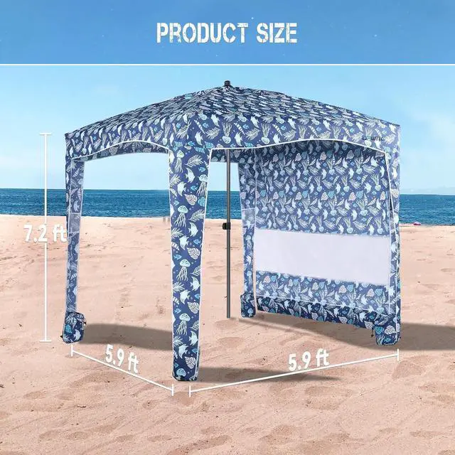 Size and Color- The sun shelter has 4 colors to choose from and its size is 5.9 ft* 5.9 ft, which can accommodate 2-4 people, you can enjoy the beach with your family and friends.