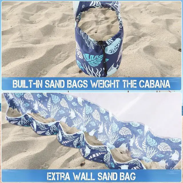 • Design and Multi-Purpose - The sides of the beach cabana have a built-in sandbag which can be filled with sand to make the umbrella more stable and