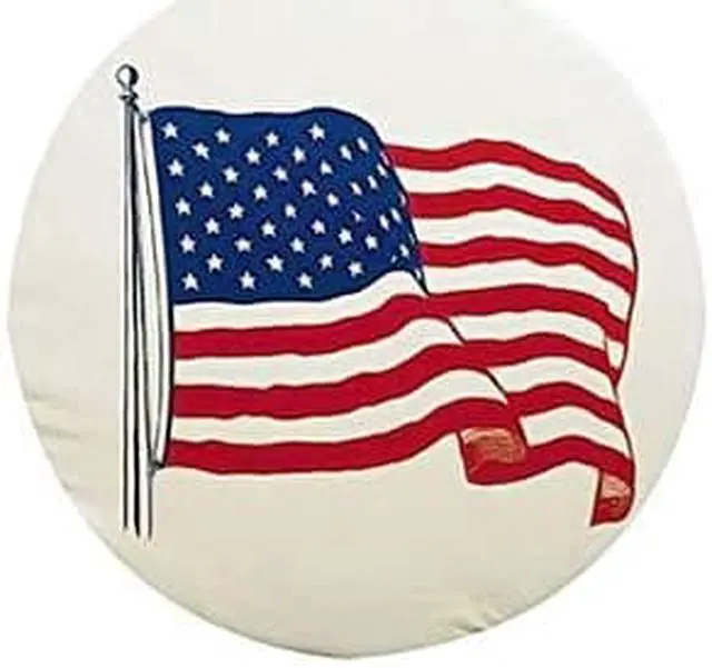 U.S. Flag Beautifully printed heavy duty vinyl tire covers. Protect your tires from damage caused by UV rays and bird droppings. Heavy duty vinyl with hollow bead welt cord and elasticized back for ease of installation. 32 1/4" tire diameter