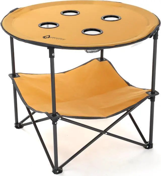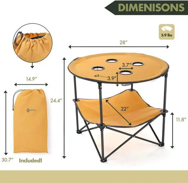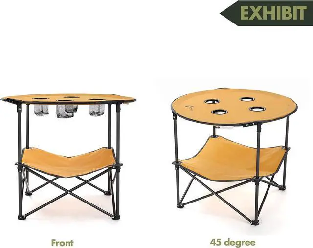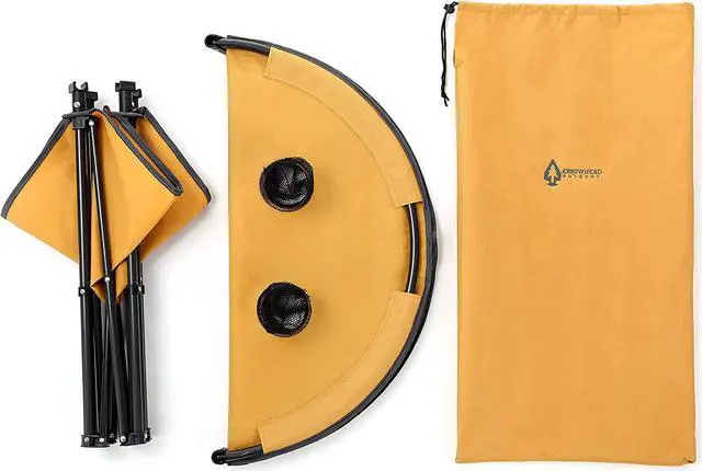 ARROWHEAD OUTDOOR Heavy-Duty Portable Folding Table, 4 Cup Holders, No Sag Surface, Compact, Round, Carrying Case, Steel Frame, High-Grade 600D Canvas, Lower Storage Area, USA-Based Support