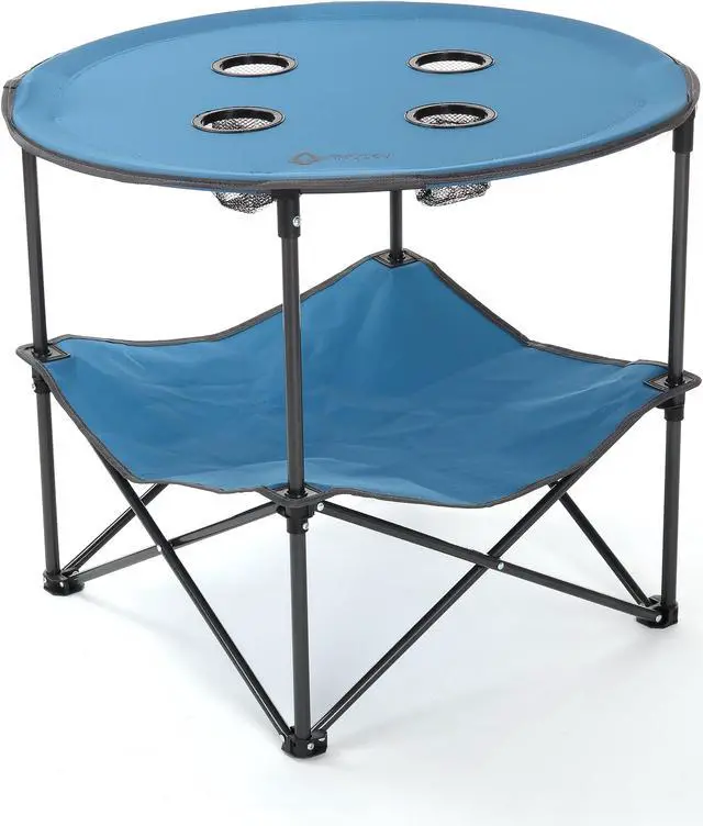 ARROWHEAD OUTDOOR Heavy-Duty Portable Folding Table, 4 Cup Holders, No Sag Surface, Compact, Round, Carrying Case, Steel Frame, High-Grade 600D Canvas, Lower Storage Area, USA-Based Support