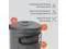 Pot includes volume indicators in both liters and ounces, and has two hinged stainless steel grips that fold flat against body of the pot.