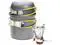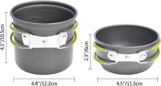 PEOPLE: Explore the outdoors with our non-stick pot and pan set, complete with a collapsible stove for convenient cooking on the go.