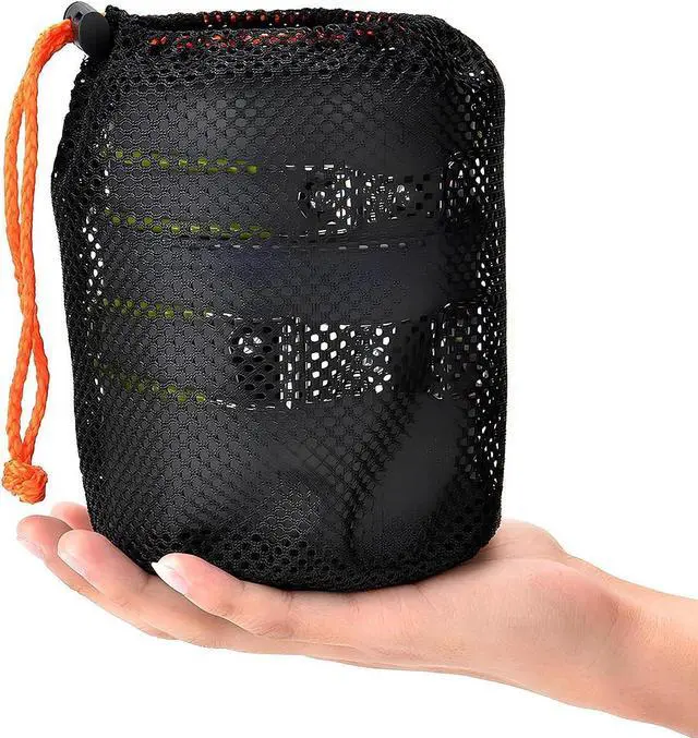 COMPREHENSIVE KIT: The set includes one mini stove, two aluminum non-stick pots with handles, a storage case for the mini stove, and a mesh travel bag for added convenience. (Gas tank not included)