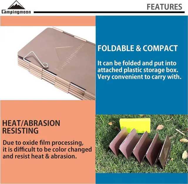 FOLDABLE & COMPACTThis stove windshield can be folded and put into attached plastic storage box. Very convenient to carry with.