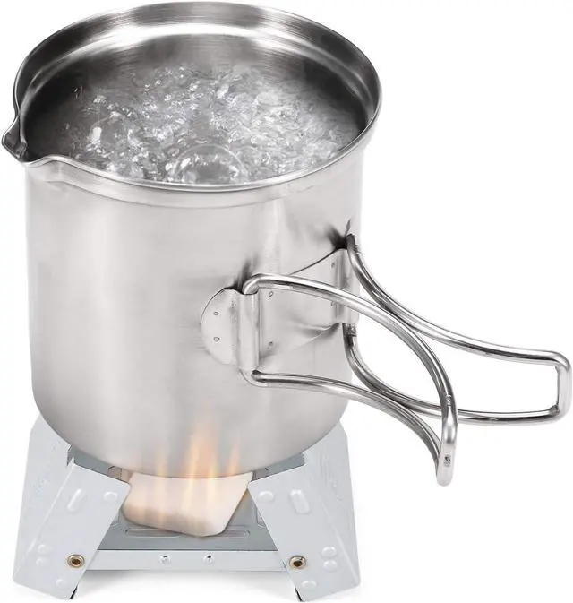 STABLE SUPPORT: Includes a solidified alcohol stove and windshield, the wind screen which can keep the stove stable and support pots and pans.