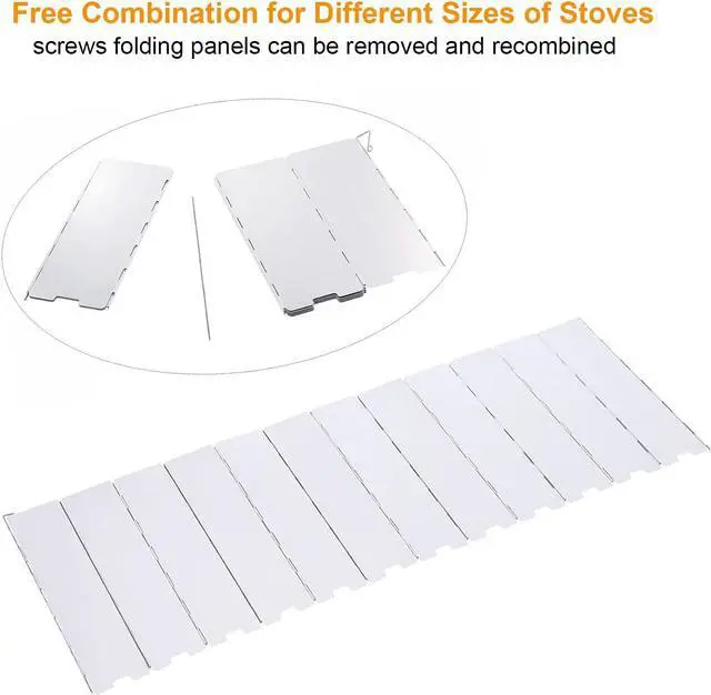Free CombinationThe alcohol stoves windshield include 12 removable plates that can be removed and recombined to fit different size stoves. You can change the cooker stove wind screen as 12 plates, 10 plates, 8 plates, etc.