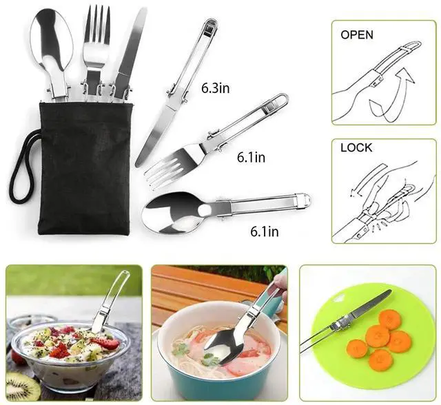 Portable Design:All the cooking wares can be stored in a small mesh bag,space-saving and accessible. You can hang it on the backpack with the attached carabiner. Just take it anywhere you go.