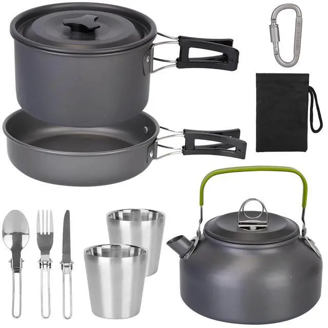 Ideal Gift:It can be an ideal gift for camping lovers. Enjoy delicious food and hot drinks with this all-in-one cooking ware set.