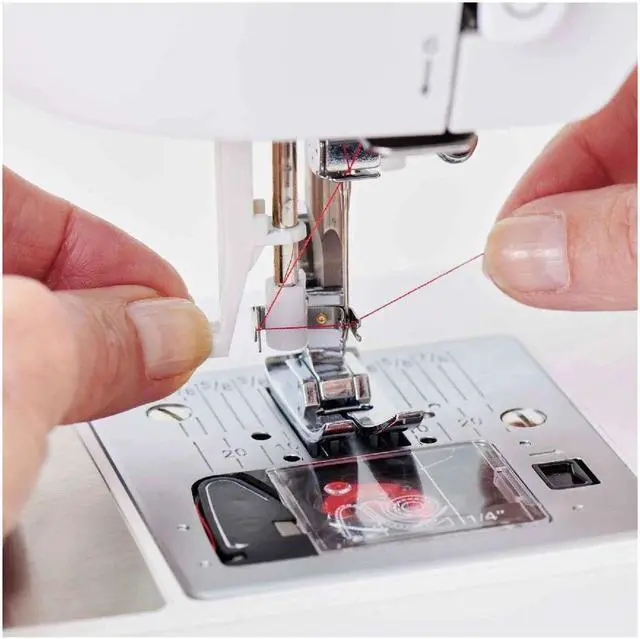 Effortlessly threads the eye of the needle - eliminates eye strain and saves you time.Top Drop In BobbinIt is easy to thread and easy to see. The transparent bobbin and cover allow you to monitor your thread supply so you don't run out of thread in the middle of a seam.Drop FeedFeed teeth can be lowered for button sewing or free-motion sewing - a must-have for quilters. Simply slide the Drop Feed Lever to lower the feed teeth. Slide it back and turn the handwheel one full turn to raise the feed teeth again. In the needle up or down, select the needle's stopping position on demand.LCD ScreenLCD screen clearly displays your selected stitch as well as stitch settings for length and width.