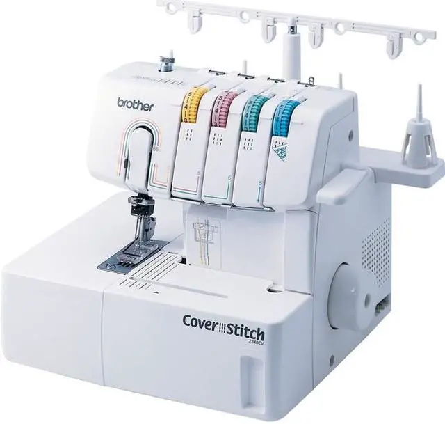 The 2340CV Cover Stitch is an advanced serger, which allows you to create a wide range of cover stitches on all types and weights of fabric for both decorative and constructive applications. Expand your creativity with the 2340CV's advanced technology. It features a tri-cover stitch, wide and narrow coverstitches, color coded threading, easy looper threading, adjustment dials for stitch length, a presser foot dial, snap on feet and differential feed which allows you to alter the speed at which your fabric is feeding through the machine. With 3 needles and one looper thread, the coverstitch machine creates professional hems, chain stitch and decorative stitching- great for making the perfect T-shirt in no time!Easy to follow lay-in threading.