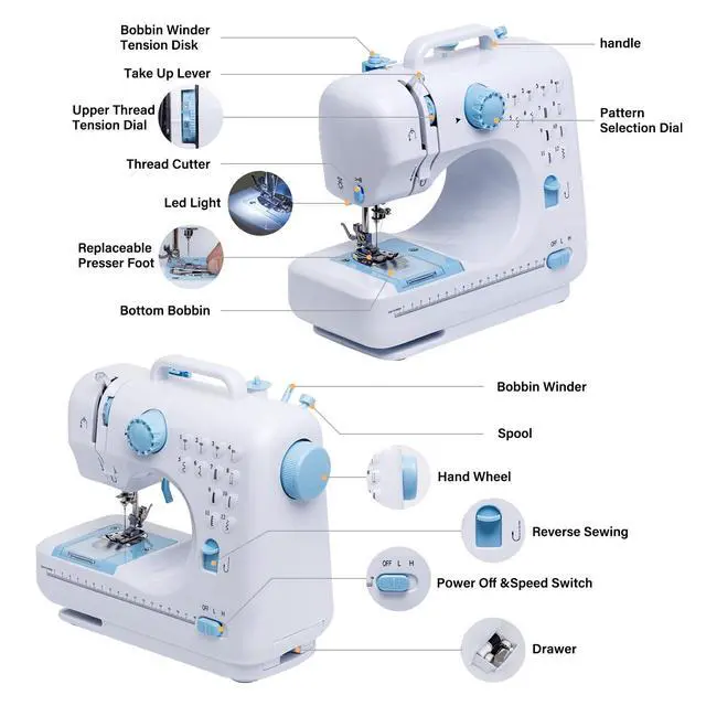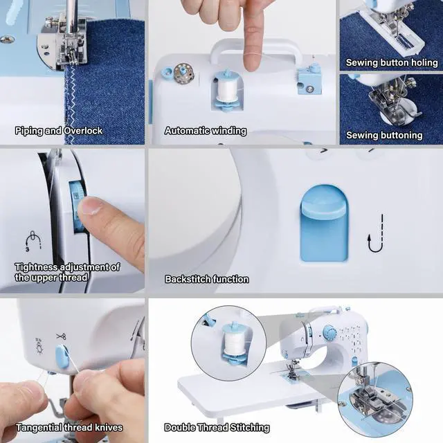 Beginner's Kit IncludedIt has the necessary accessories for sewing, such as a foldable storage bag included a pair of scissors, 14 spools, 1 pin, 3 buttons, 1 top needle, 1 tape measure, 1 thread clipper, 1 needle box (30 needles), 2 threading devices for sewing machines. You don't need to spend extra money and time buying these accessories separately, as long as you purchase this set of sewing machines, you can easily get them! Please read the manual and watch instructional videos before use.