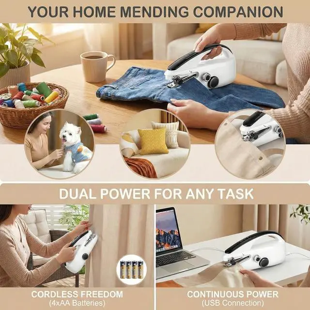 UPGRADED PERFORMANCE & EASY OPERATION Experience effortless mending with our technologically advanced handheld sewing machine. It delivers stronger power with lower noise compared to traditional models. Perfect for quick fixes and DIY projects, it's user-friendly for both beginners and pros, saving you time and money.