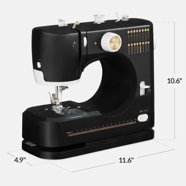 COMPACT & VERSATILE: Lightweight and portable for easy transport, this 6V sewing machine is perfect for mending clothes or creating DIY crafts and garments, and includes a built-in storage compartment for quick access to threads and accessories; OVERALL DIMENSIONS: 11.6"(L) x 4.9"(W) x 10.6"(H)