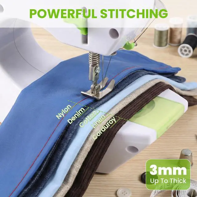 Portable Sewing Machine with Dual PowerExperience true portability with this versatile handheld sewing machine. It offers two operation modes (foot pedal or push button) and dual power options: use 4 AA batteries for on-the-go repairs anywhere, or plug in the AC adapter at home. This flexibility makes it a supremely portable sewing machine handheld. Important: Never use both power sources simultaneously.