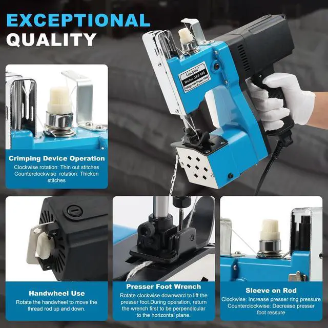 Versatile Bag Stitching Tool This handheld sewing machine easily seals burlap, sand bags, kraft paper, leather, and woven sacks. Built for industrial use in warehouses, logistics, farms, and shipping centers.Not suitable for household sewing machines.