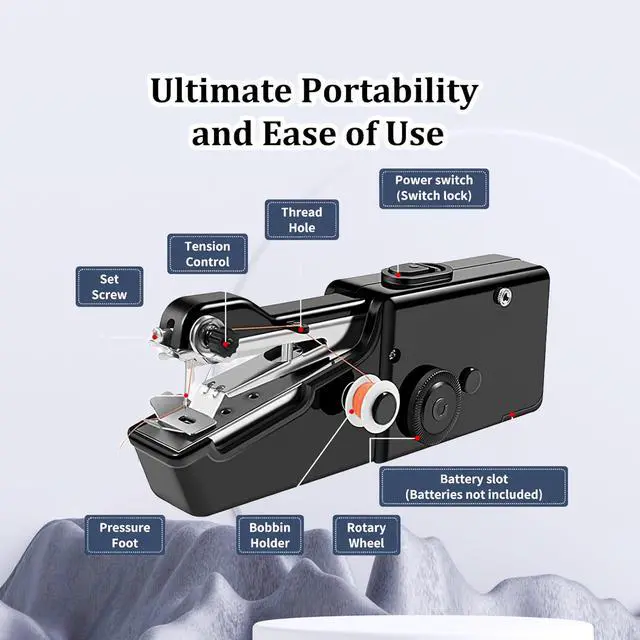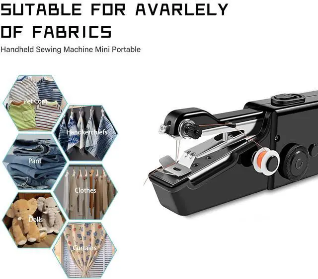 Discover the convenience of quick repairs with this portable handheld sewing machine by Ababila. Perfect for on-the-go mending, this compact electric device operates on 4 AA batteries or a 6V power adapter (not included) and delivers up to 350 stitches per minute when battery-powered. The lightweight design, measuring just 21 x 7 x 5 cm, makes it ideal for travel and storage in tight spaces. This versatile tool handles fabrics up to 1.8mm thick, allowing you to repair clothes, curtains, bedding, and more - even without removing the garment. The comprehensive set includes 8 thread spools, scissors, safety pins, needle threader, sewing needles, extension spindle, and measuring tape. While it's a single-thread machine requiring manual knot-tying, its simple controls make it accessible for both beginners and experienced users. The white finish complements any workspace, and its metal construction ensures durability. Whether you're hemming pants, fixing a torn seam, or working on craft projects, this handheld sewing machine offers a practical alternative to traditional desktop models.