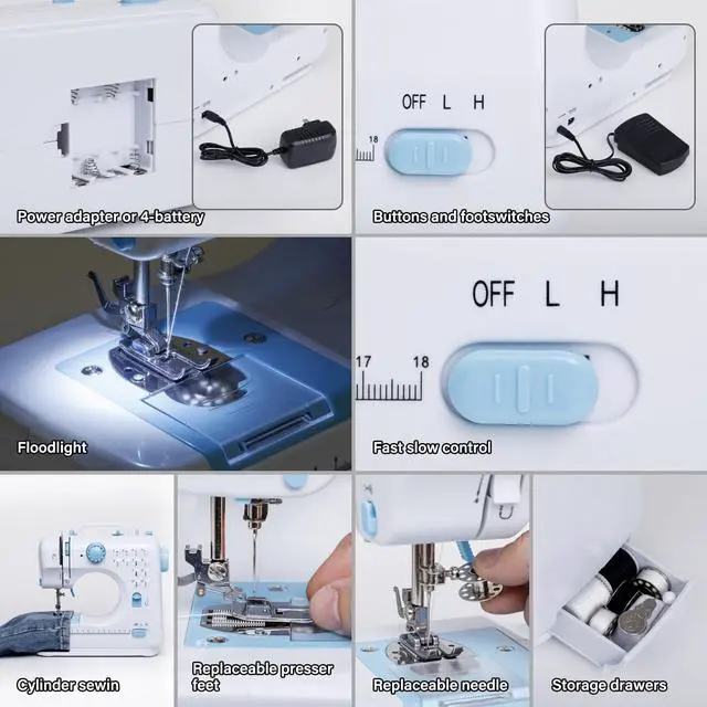 Beginner's Kit IncludedIt has the necessary accessories for sewing, such as a foldable storage bag included a pair of scissors, 14 spools, 1 pin, 3 buttons, 1 top needle, 1 tape measure, 1 thread clipper, 1 needle box (30 needles), 2 threading devices for sewing machines. You don't need to spend extra money and time buying these accessories separately, as long as you purchase this set of sewing machines, you can easily get them! Please read the manual and watch instructional videos before use.