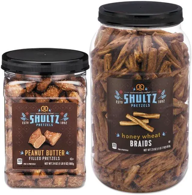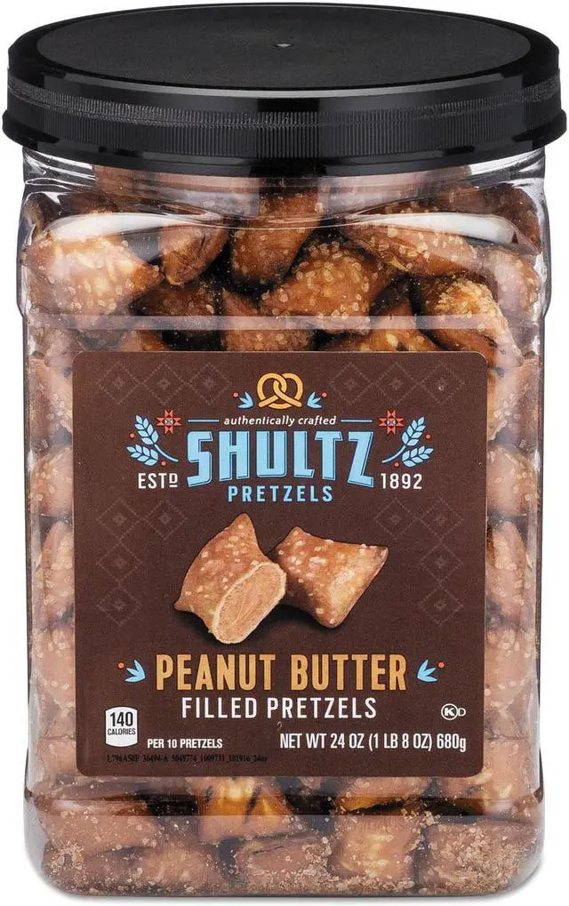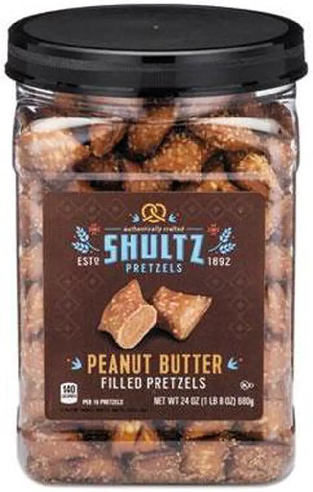 For generations, these crunchy pretzels have been a breakroom favorite in offices everywhere. Add chocolate for a sweet snack, dip them in cheese or dressing for a salty snack or eat them just as they are! Food Type: Pretzels; Flavor: Peanut Butter; Capacity (Weight): 24 oz; Packing Type: Tub.