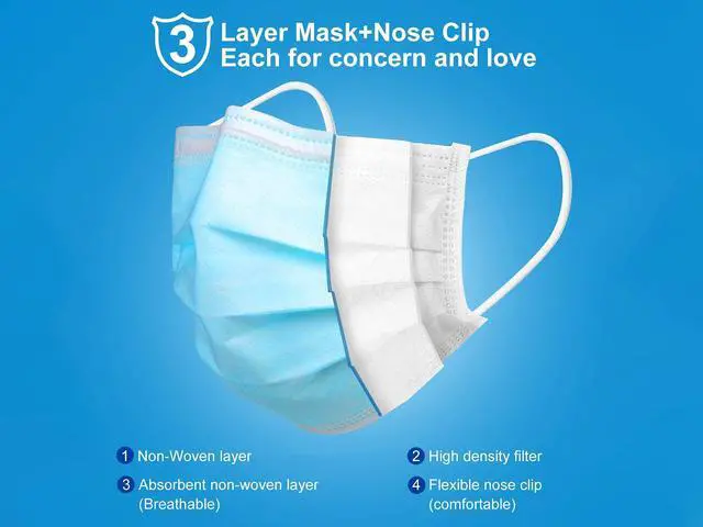 ROME CARE Disposable Face Masks, 3 Ply Disposable Face Mask for Men & Women 100 Pcs Blue