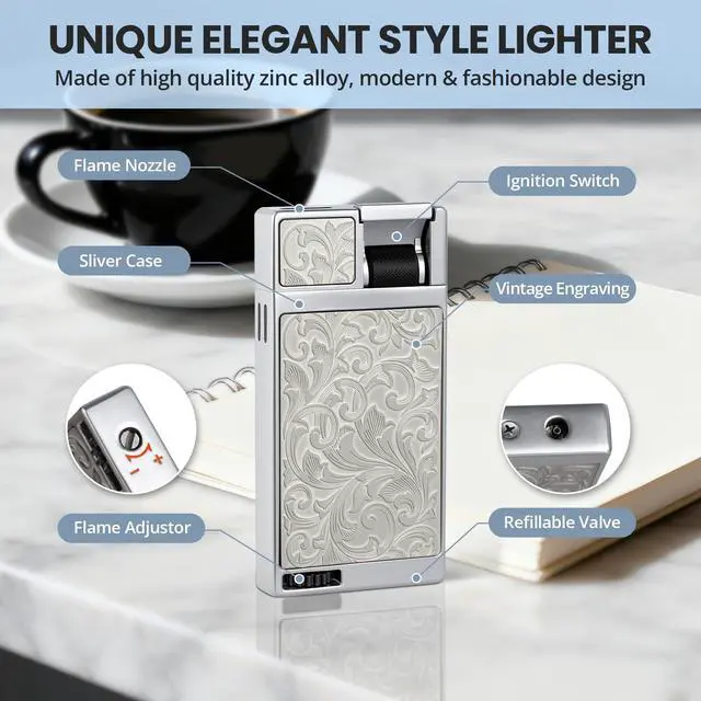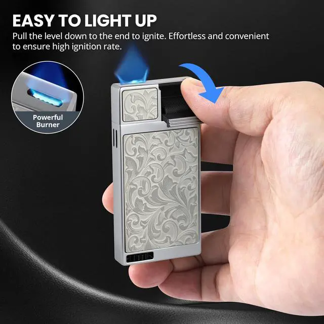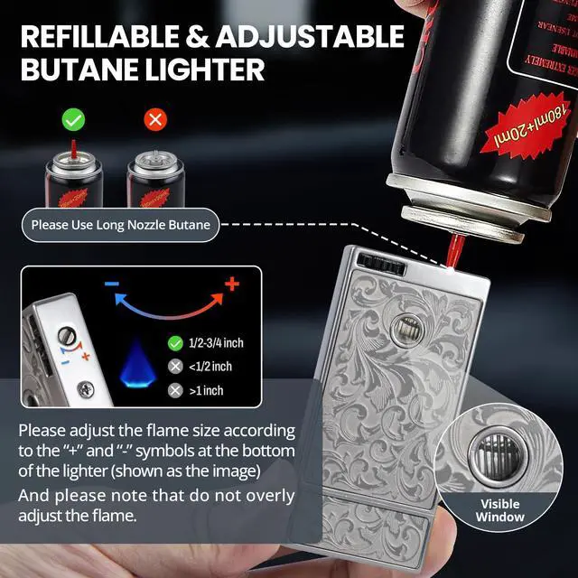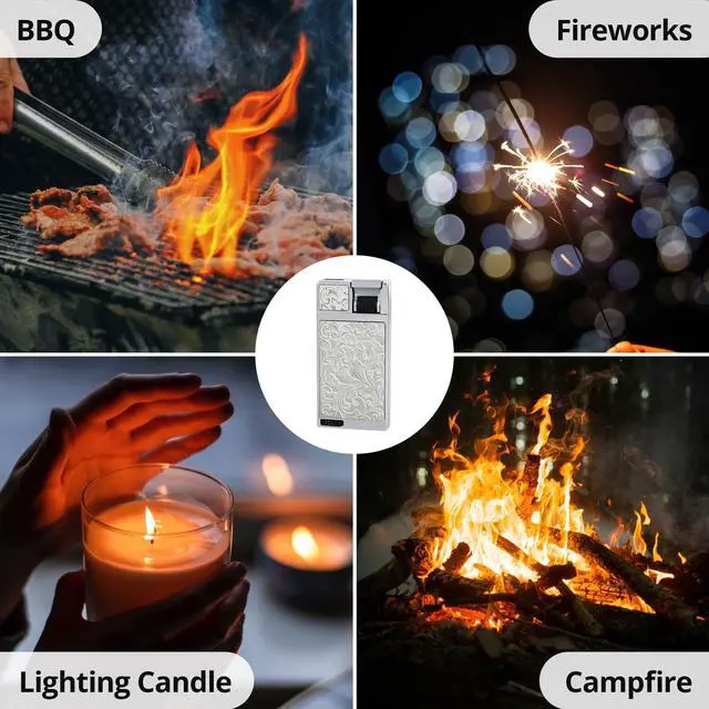 LYPOBALA single flat jet flame butane torch lighter is made of high-quality, sturdy zinc alloy material and has a super-powerful waterfall and stable flame to light things in a snap, efficient ignition, safe and durable.