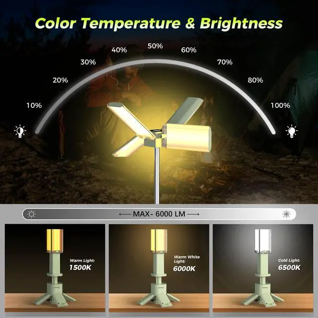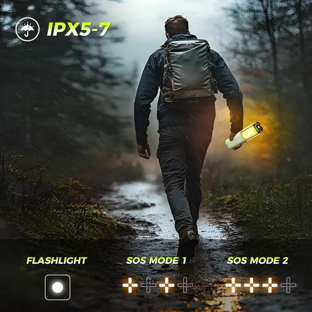 - Built-in Magnets and Waterproof Design: For added convenience, especially in a garage or workshop setting, six Neodymium magnets are built into the base, allowing the lights to be easily attached to metal surfaces. The camping lamps are designed to be waterproof, with the lamps achieving an IPX7 rating and the body an IPX5 rating, ensuring durability in various weather conditions.