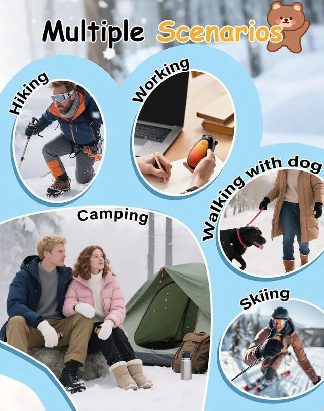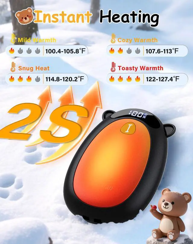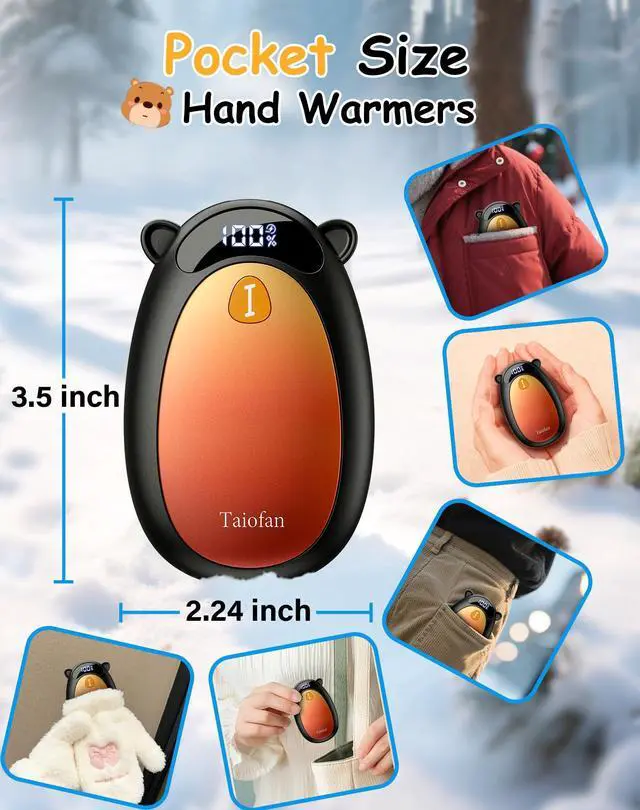 - [Ultra-Nano Size & Cute Design] These cute bear-shaped portable hand warmers are pocket-sizedthey slip right into your coat pockets, backpack side slots, or even inside your winter gloves without taking up space. They're portable enough for daily commutes or on-the-go adventures, whether you're rushing to the subway or heading out for a weekend hike. What's more, our heated hand warmers don't give up warmth for their compact build, so this cozy warmth goes wherever you need it
