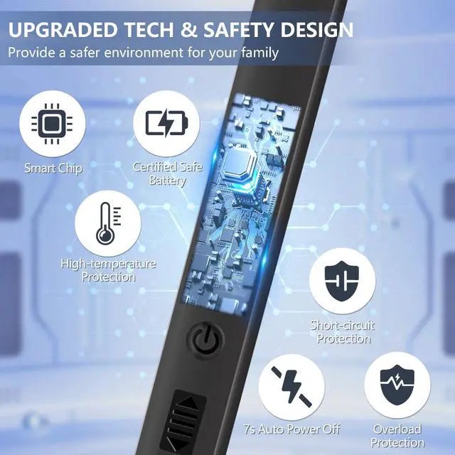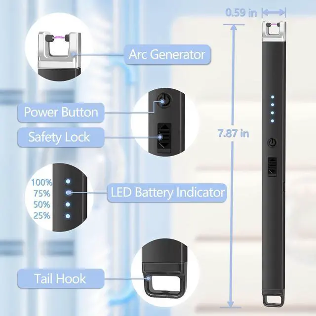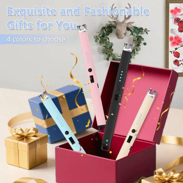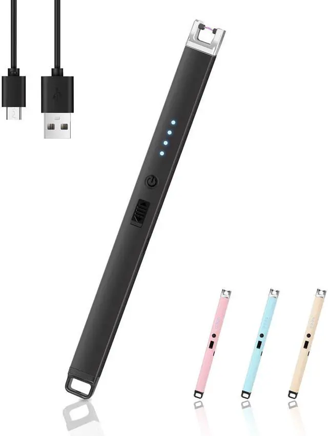 - [EXQUISITE AESTHETICS MEET PRACTICAL FUNCTIONALITY]- Slender design makes electronic lighter small, exquisite, and safer to ignite from a distance. The hook at tail is more convenient for storage and easy to use at any time. Compared with traditional lighters, the flameless, no oil, no smoke, no odors design of lighter for candles doesnt produce a pungent smell, safe & secure.