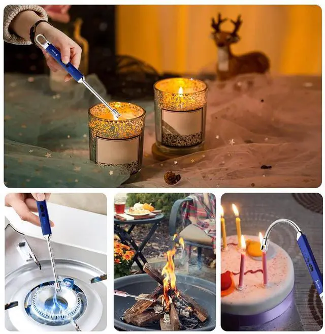 360°Rotatable Bendable Neck - The Arc Lighter with 360°Rotatable Neck can be bend to any angle you want to meet different applications,The 4.1in ideal long lighter perfectly use for candles, stoves, BBQ grills, camping, hiking, fireworks, outdoor and indoor activities, etc and protects you and your family from burns.