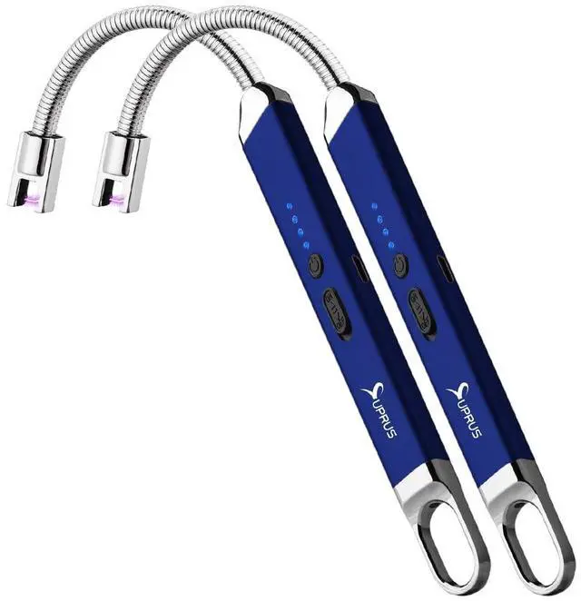 Rechargeable USB Arc Electric Lighetrs with Safety Switch 360° Flexible Neck Flameless Grill Long Lighters for Candle Camping Cooking (Dark Blue, 2Packs)