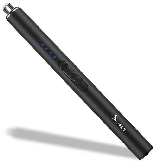 This is the upgraded SUPRUS arc lighter which can display real time battery volume. When 4 LED lights on the barrel turn on, it is full charged.