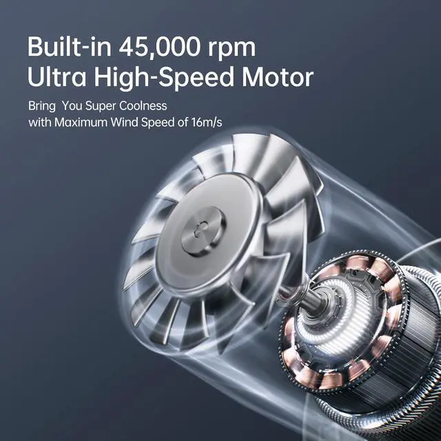 10-Speed Powerful Airflow: Built-in 45,000 rpm ultra high-speed motor, Jisulife outdoor fan ultra 1 delivers a peak wind speed of 16m/s for super cooling experiences. It also offers 10 adjustable wind speeds, catering to your own cooling needs