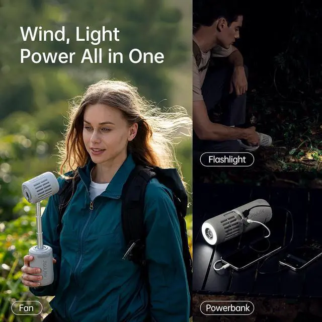 Wind, Light, Power All in One: With a large capacity battery, this portable outdoor fan can be used as an emergency power bank to directly charge a mobile phone, with no more fear of running out of phone battery. Built-in LED Light and SOS function, it not only provides long-term illumination but also helps you with outdoor activities. Your ideal outdooor companion on the hottest days and great gifts idea for outdoor enthusiasts