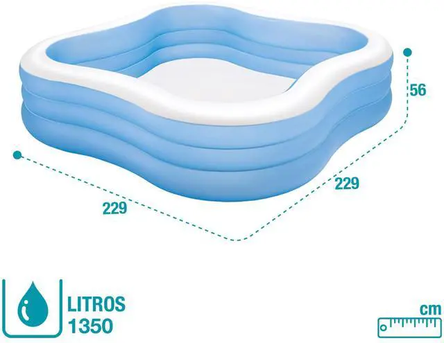 A great way to beat the summer heat, the Intex 57495EP swim center family pool will keep your family cool all season long. This inflatable vinyl pool is 90" x 90" x 22" in size, and provides plenty of room and water for your family to splash. The see-through window on each side adds to the fun. Create an oasis in your backyard with this durable and easy-to-clean inflatable pool!