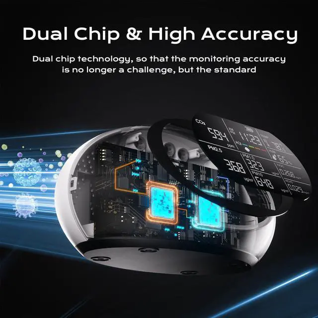 | Style | CO2, CO2 alarm, TVOC, HCHO, PM1.0, PM2.5, PM10, AQI indication, Humidity, Temperature, time, skin-friendly |