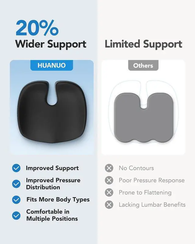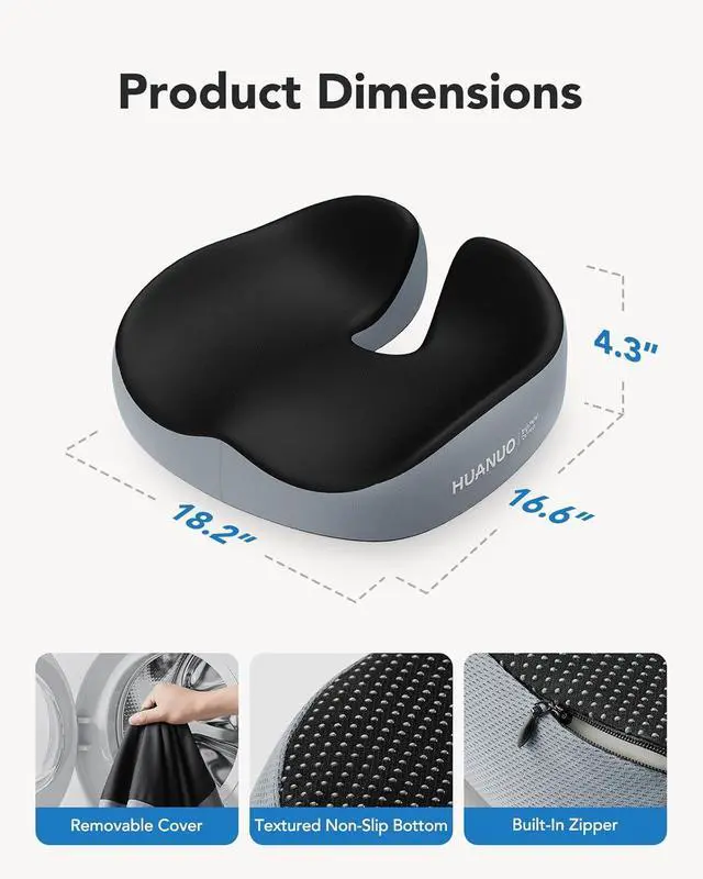 HUANUO Seat Cushion for Office Chairs, Extra Large Desk Chair Cushion for Back Pain Tailbone Pain Relief, Ergonomic Memory Foam Car Seat Cushion, Wheelchair Cushions for Long Sitting, Anti-Slip Bottom