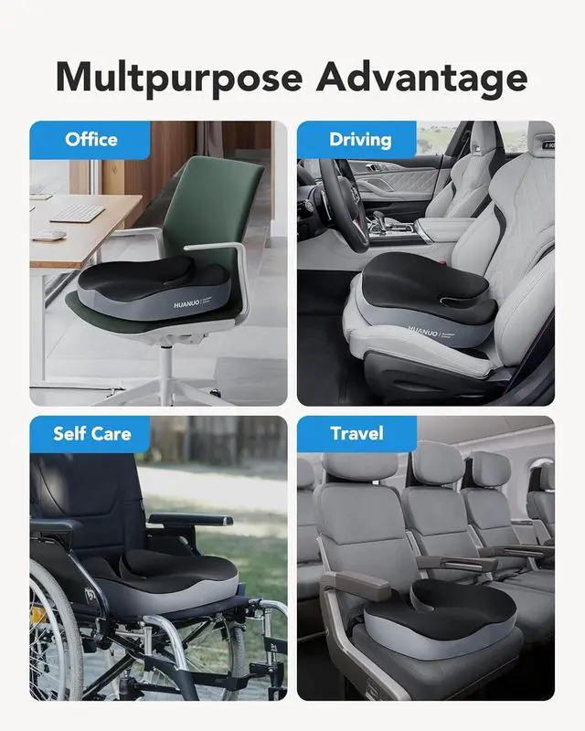 Versatile Office Chair Cushion: This pressure relief seat cushion suits a variety of settings and can be used with an office chair, car seat, wheelchair, airplane seat, and more. The practical design adapts to your needs, providing consistent comfort wherever you sit. Great for your home office, commute, or even outdoor events.