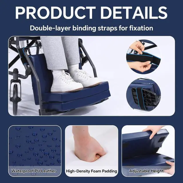 High Quality MaterialWheelchair footrest extension cushion is made of PU leather and high density sponge. Soft support, smooth and comfortable to use. Easy to clean.
