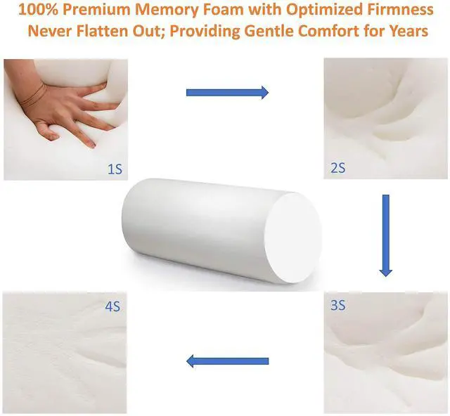 - Highly resilient memory foam with optimized firmness retains its shape and molds to your positions. Not too firm or too soft.