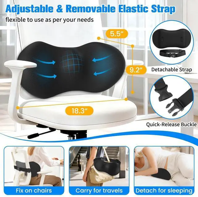 Elastic Strap: SweetSlubrs adjustable elastic strap with a quick-release buckle keeps this chair back support securely in place on most office chairs. Easily remove it and use it as a lumbar support pillow on beds, sofas, or while traveling