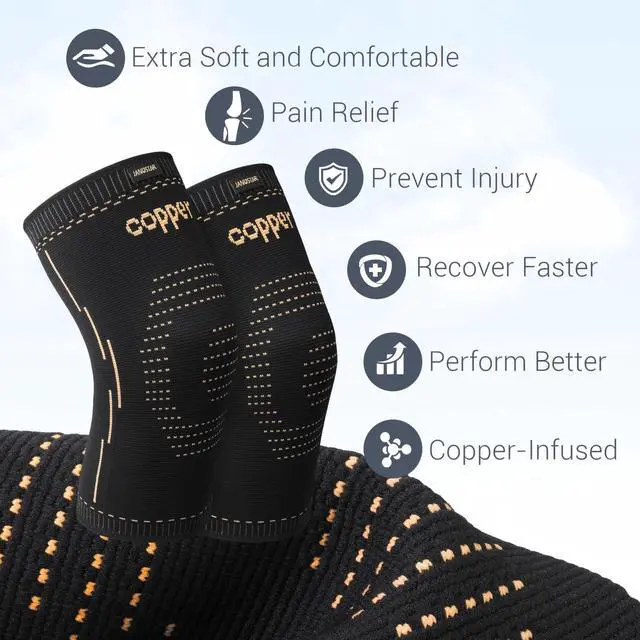 Versatile Support for Active Lifestyles: Designed for both men and women, our copper-infused knee braces provide reliable relief for knee pain, arthritis, and injury recovery. Perfect for everyday usewhether youre working on your feet, walking, or staying active with sports like hiking, running, basketball, cycling, or gym workouts. Even seniors can enjoy the comfort and support! Each pack includes two sleeves, so youll always have a spare ready.