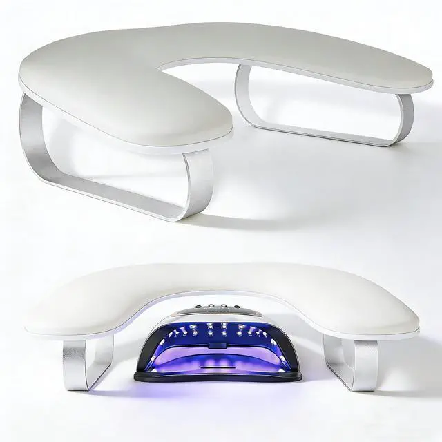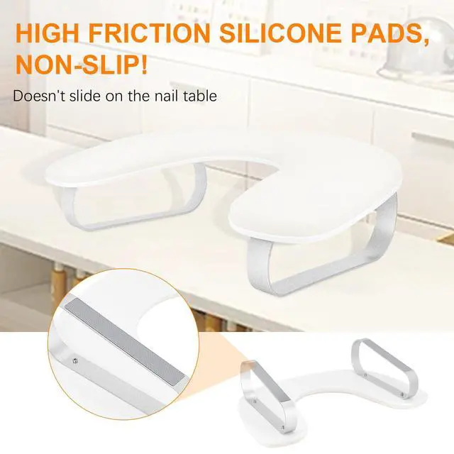 - 1 upgraded U-shaped nail arm rest (white nail arm rest+silver aluminum alloy holder) ,