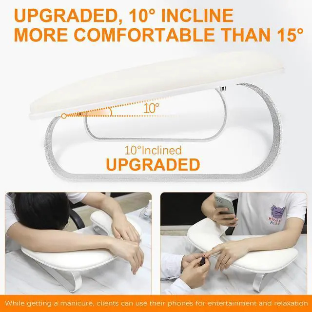 Arm Rest for Nails Tech 10° Inclined, U-Shaped Nail Hand Rest Manicure Arm Rest Stand with Silver Aluminum Alloy Holder Non-slip