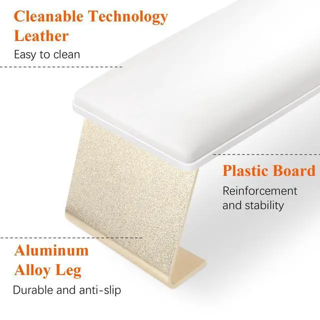 Erasable Arm Rest for Nails Tech, Luxury Nail Arm Rest White Manicure Hand Rest for Nails Tech with Non-Slip Aluminum Alloy Legs, Cleanable Technology Leather