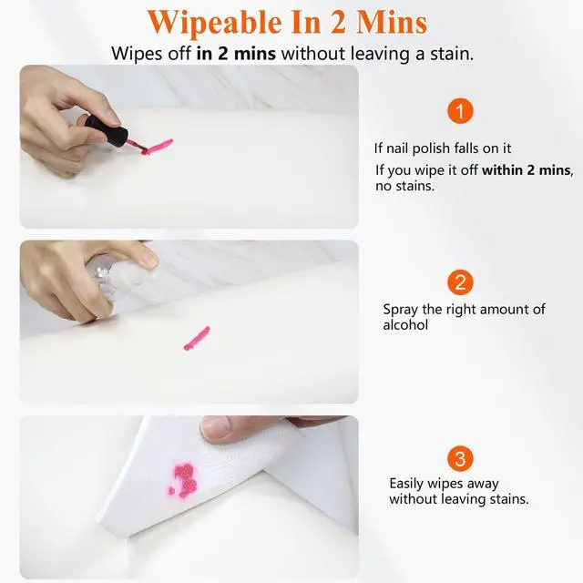 • Technology PU leather, durable and cleanable, if nail gel polish falls on the nail arm rest, it can be easily removed by spraying alcohol within 2 minutes, leaving no stain.