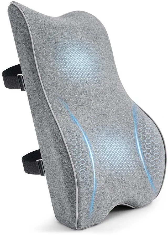 Lumbar Support Pillow for Office Chair Car Seat Gaming Chair, Memory Foam Back Support Pillow, Lumbar Cushion Back Cushion for Lower Back Pain Relief, Adjustable Strap Washable Cover-Grey